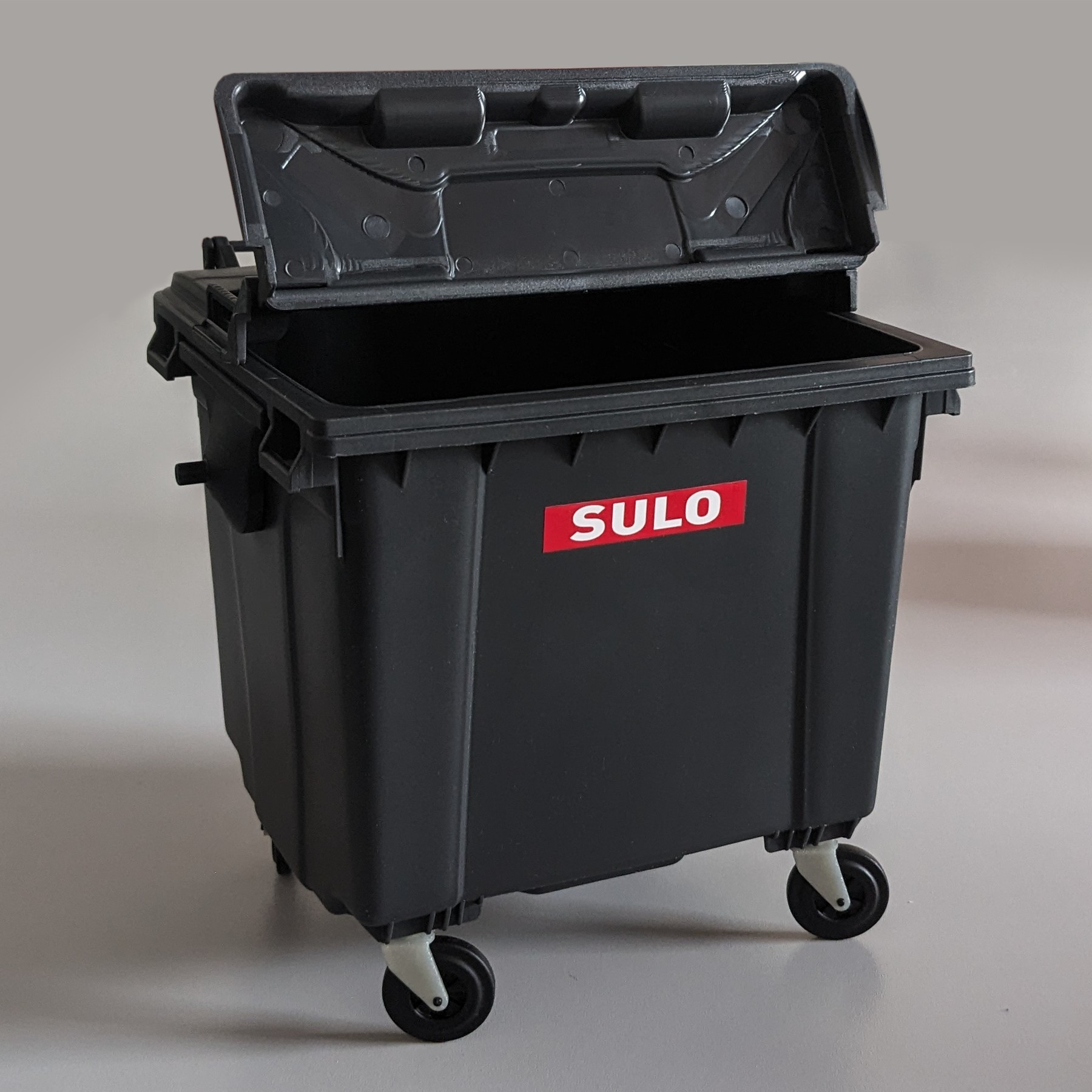 Miniaturnachbildung: des SULO Müllcontainers MGB 1100 Liter FD DID mit Flachdeckel und Deckel im Deckel
